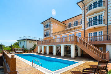 Резиденция 1300 м2 на участке 17,5 соток, четырехэтажный. Расположен в республике Крым, пгт Форос, улица Космонавтов. Коммуникации: 65 кВт электричество, водоснабжение городское, отопление электрическое.