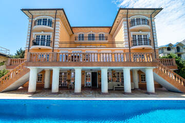 В доме выполнен дорогостоящий ремонт. Мебель и многое другое привезено из США, Англии и Италии. Пол на кухне “Мербау”, холодильники фирмы “Sub-Zero” (50 лет гарантия), газовая плита “Wolf”, весь мрамор и плитка сделана и доставлена из Италии, окна и двери сделаны под индивидуальный заказ из лиственных деревьев фирмы “Мирт”, наружные мраморные подоконники обшиты медью, водосточные трубы – медь, все помещения оснащены сантехникой “DEVON&DEVON” по всему дому установлены аудиосистема, сигнализация и видеонаблюдение; кровля – немецкая черепица. Объект выдерживает 9 баллов землетрясения. Есть гараж на 5 автомобилей.