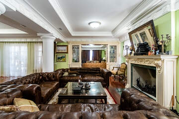 Всего в доме 20 комнат, 11 из которых спальни (каждая оснащена санузлом и душевой/ванной). Всего санузлов в доме 15. Один этаж выделен под зону отдыха, где расположилась кухня, барная стойка, столовая, каминный зал, комната отдыха и все это с выходом на большую террасу. С нее же есть выход на большой балкон.