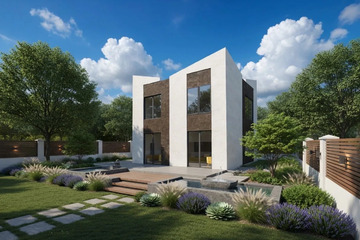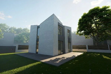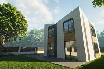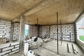 Конструктив дома выполнен с применением современных технологий: монолитная железобетонная плита фундамента, железобетонные колонны и перекрытия, надёжная ж/б лестница. Стены из газобетона обеспечивают хорошую тепло- и звукоизоляцию. Установлены панорамные окна «в пол» из тёмного профиля. Дом передаётся в черновой отделке, фасад выполнен.