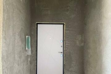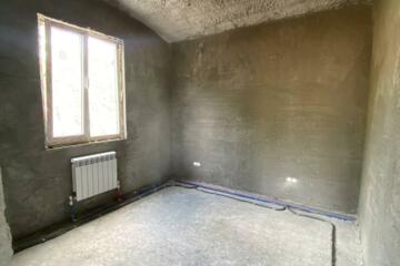 - Разведена электрика, сантехника и отопление, стены оштукатурены.