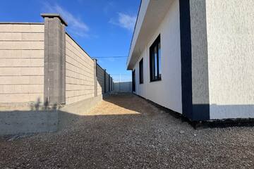 Дом - 97 м2( мастер спальня с с/у + гардеробная; 2 спальни; с/у; кухня гостиная с остров- барная; котельная; бассейн 6х3)