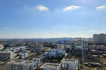 Апартаменты с панорамными окнами с видом на город и на бухту.