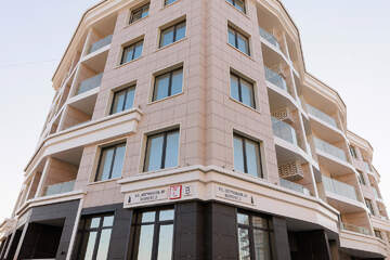 Фасадная часть здания покрыта энергосберегающим керамогранитом. Летом - держит прохладу, а зимой тепло.
