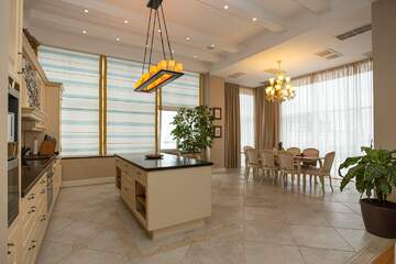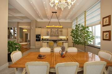 жилая площадь — 147 м², просторная кухня-гостиная — 83,1 м², три изолированные спальни, несколько санузлов, зоны отдыха и приёма гостей.