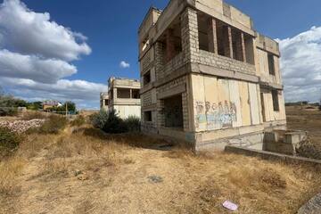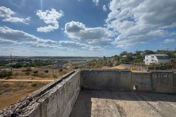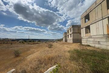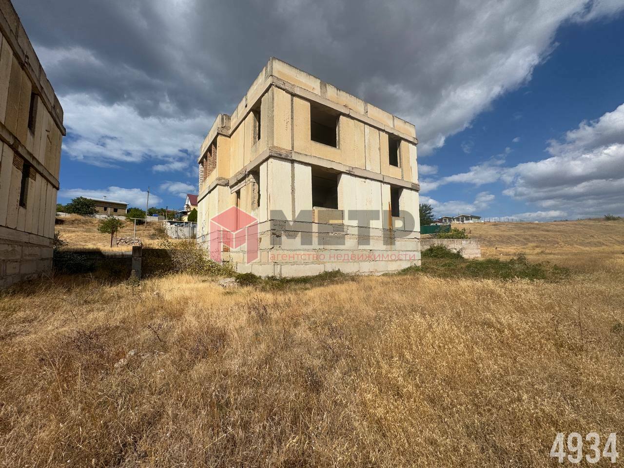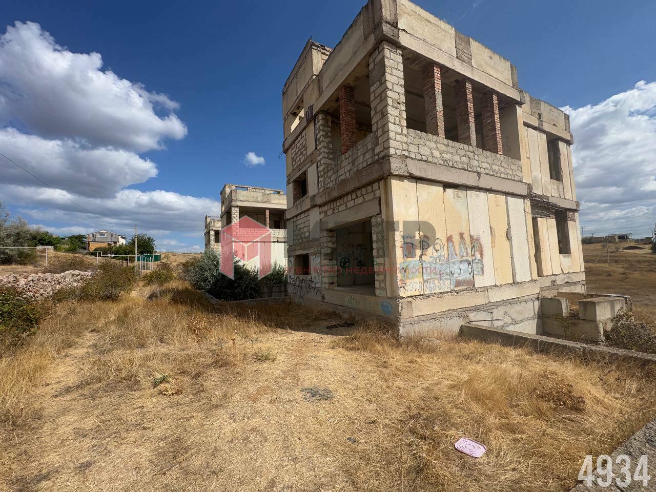 На участке возведен двухэтажный дом с цокольным этажом и эксплуатируемой кровлей в черновой отделке из инкерманского камня. Перекрытия — железобетонные плиты. Перегородки - красный кирпич.