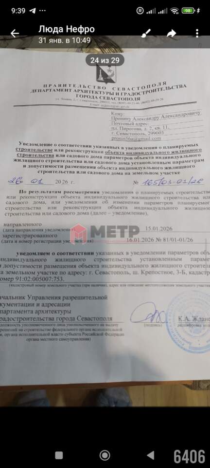 Получены ГПЗУ и уведомление на строительство дом 6.5* 10 .