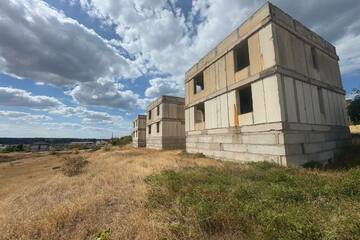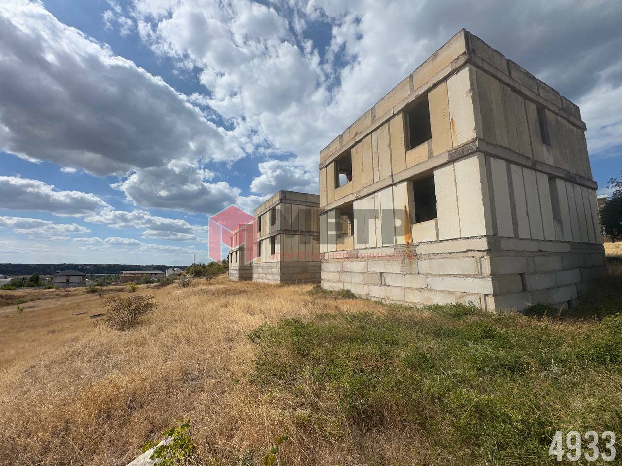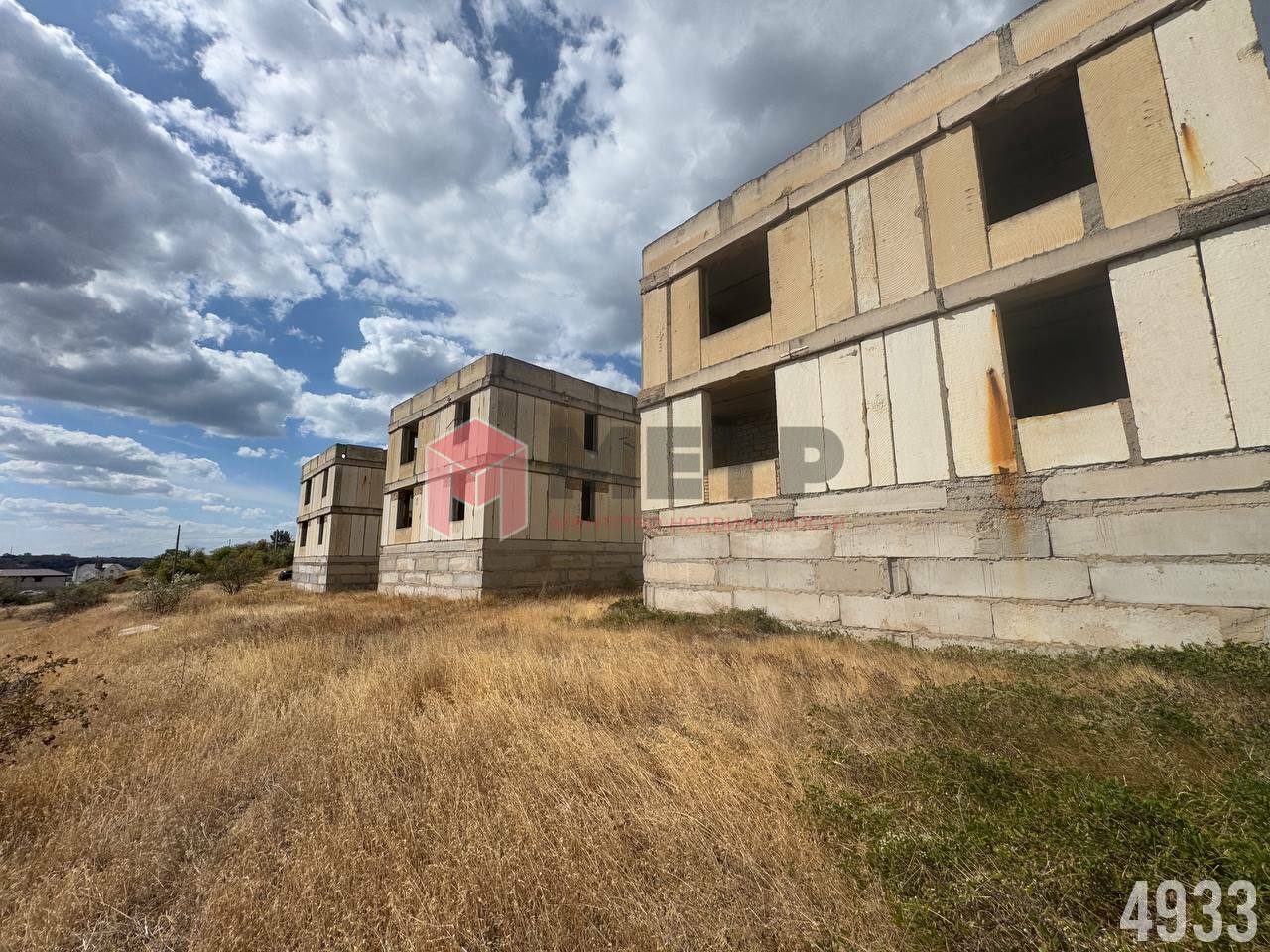 На участке возведен двухэтажный дом с цокольным этажом и эксплуатируемой кровлей в черновой отделке из инкерманского камня. Перекрытия — железобетонные плиты. Перегородки - красный кирпич.